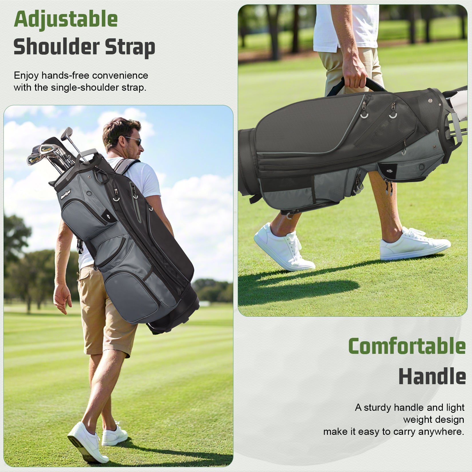- Convenient Carrying Handles: Golf cart bags for men with two handles on the top, easily carried and placed on a golf cart, enabling seamless movement and operation on the course.