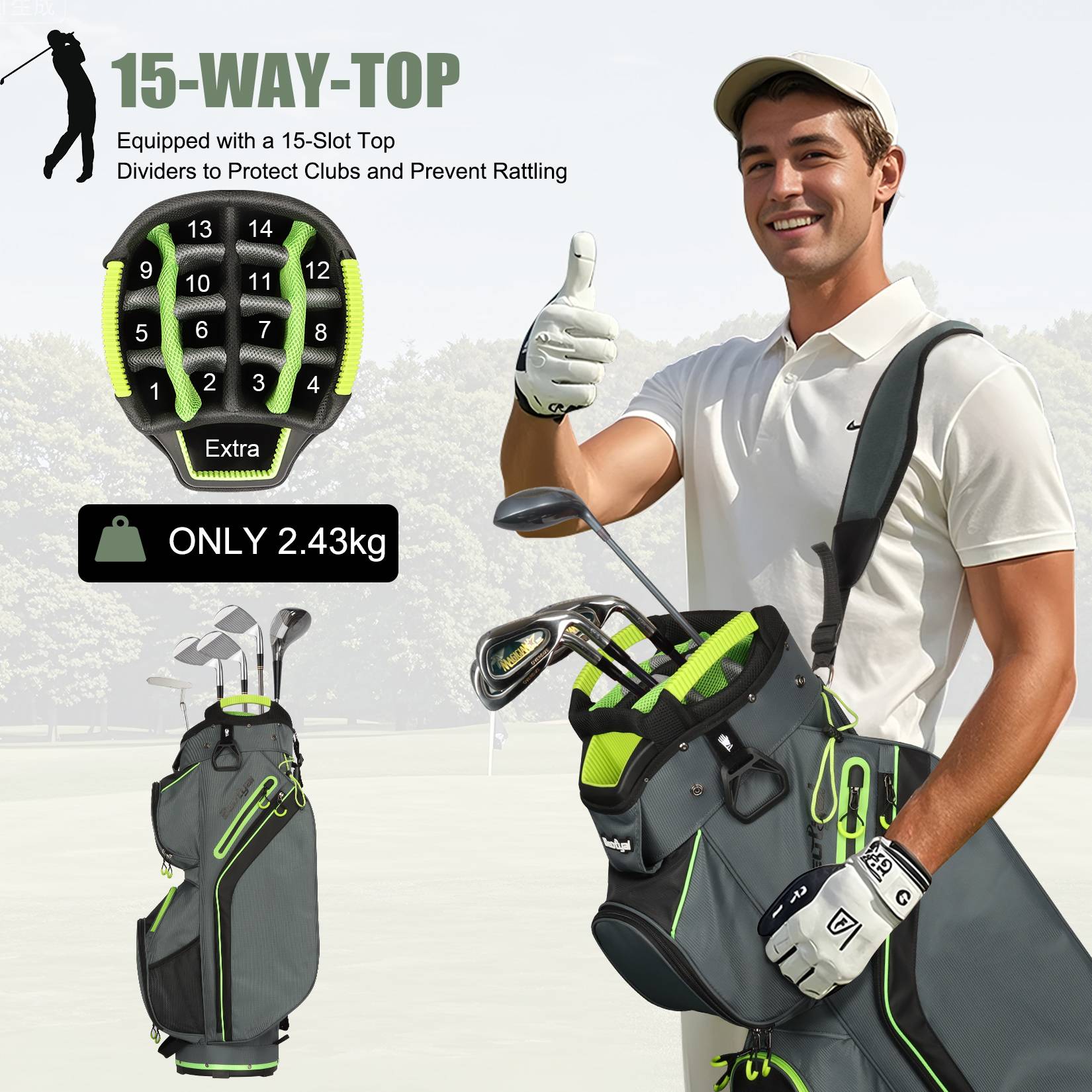 15-Way Golf Cart Bag with Cooler & Rain Cover – Lightweight for Men & Women