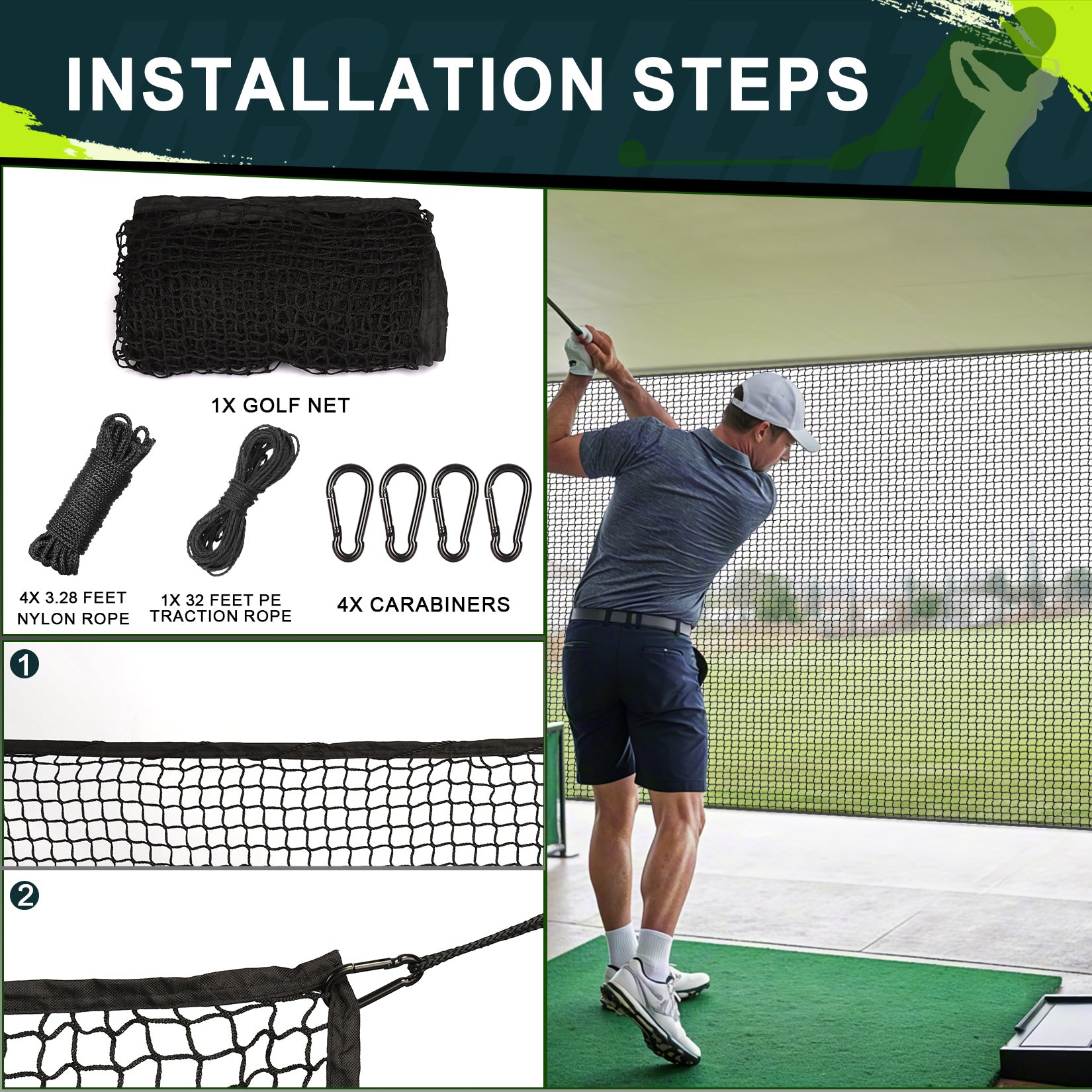 - Heavy Duty Golf Hitting Net: Beutyal golf netting is made of high strength nylon fiber netting material, sturdy enough to withstand high impact golf hitting and driving balls.