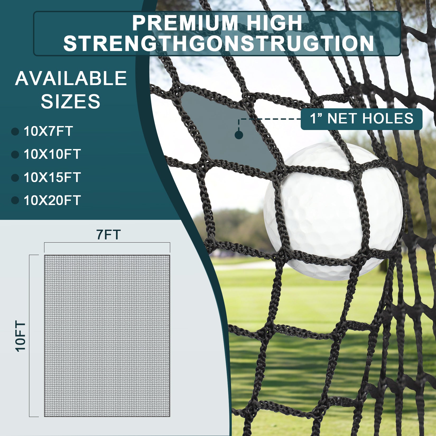 - Durable Construction: The golf netting for garage with 1” square mesh, 3mm polyester cord and finished seams around the entire perimeter to ensure strength and longevity, perfect for backyard netting for sports.